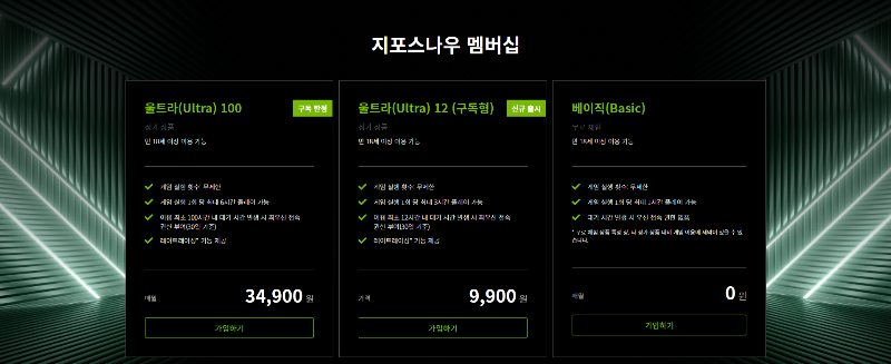 가입 첫 달은 무료라는 말 때문에 오해할 수 있으나, 지포스 베이직은 현제 기간 상관없이 이용이 가능합니다.